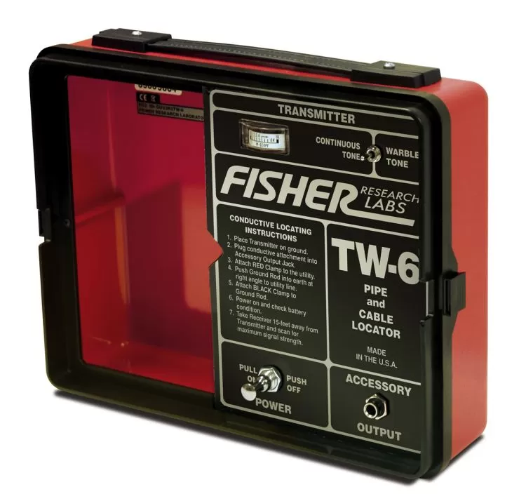 Detectorul Fisher TW-6 poate gasi tevi subterane, cabluri, capace de canal si alte obiecte metalice mari. Rezistent si usor de folosit la un pret competitiv acest detector reprezinta standardul pentru detectoarele de uz industrial. Spre deosebire de alte aparate, ce au transmitator si receptor separat, TW-6 cand este montat pe manerul oferit optional, poate efectua detectii direct in zonele unde sunt tevi subterane sau cabluri ce au punctul de start necunoscut. Deasemenea acest aparat are posibilitatea de “noise canceling”-anularea interferentelor cauzate de linii de inalta tensiune.